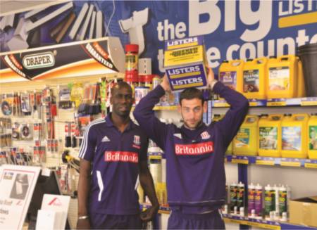 Of course even premiership footballers have to get their hands dirty sometimes and it was very much the case when they were put to work on Listers BIG Trade Counter. “We were a couple of men down due to holidays so we put them straight to work serving customers,” said MD Mark Warren. “Unfortunately we had to cut their time behind the counter short when Rory Delap decided to perfect his trademark throw using a box of Everbuild Silicone Sealant with our counter manager!”